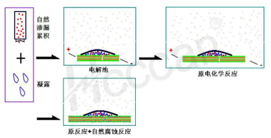 漏液成因过程还原-电解池形成: